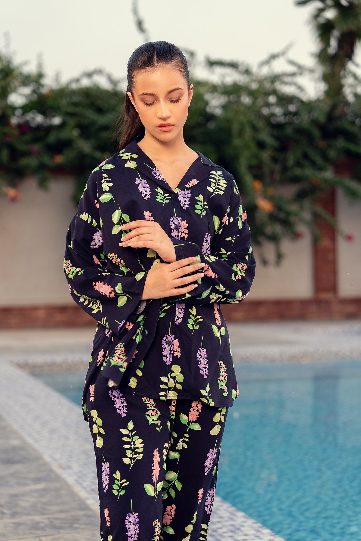 Wrap yourself in timeless elegance with our Navy Blossom Linen Nightwear, crafted from soft, breathable premium linen. The deep navy base is beautifully adorned with delicate floral prints in lilac and blush, giving it a refined yet cozy charm. Designed for relaxed evenings and serene mornings, this set blends luxury comfort, effortless style, and all-season durability — perfect for women who love elegance even in their downtime.